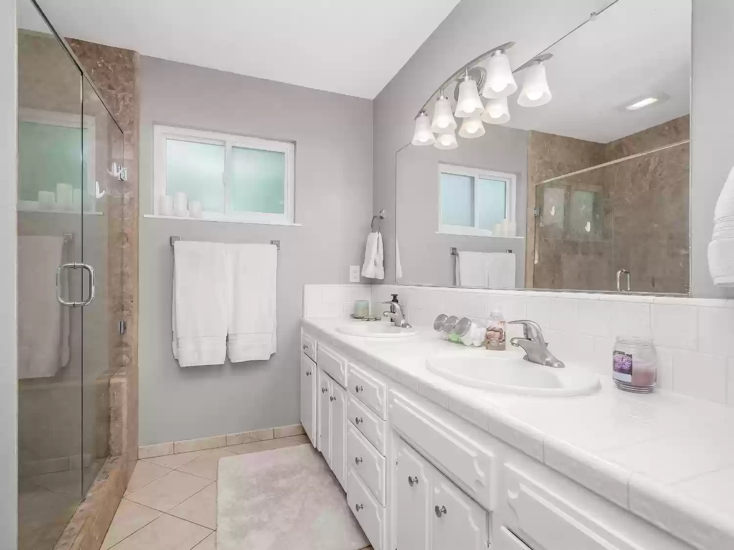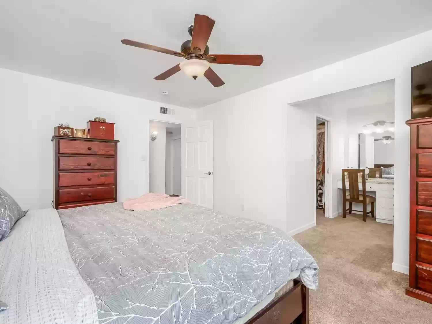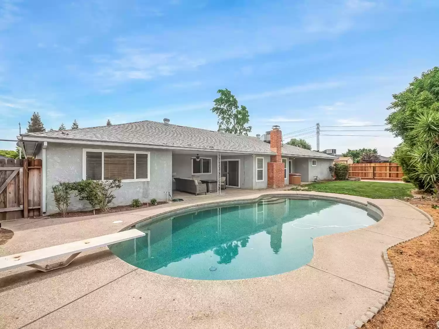 ! If you are looking for space, look no further. This home features an oversized in law or teenager suite with a walk in closet and private bathroom, beautiful french doors that lead to an oversized office, a cozy family room with a fireplace and an open and airy great room! From oversized closets, to double closets, to linen closets, this home has it! The main bedroom features a vanity area that leads to the bathroom. The bathroom has tile floors, tile countertops and tile shower. It also has a sliding glass door that opens to the backyard! The kitchen has been updated with tile countertops and all appliances are less than two years old. The home is great for entertaining with a large backyard that features a pebble tech pool, spa, covered patio and mature landscape. It also features owned solar, dual pane windows, updated AC/Heating Unit and insulation. It is conveniently located close to Riverpark, Woodward Park, shopping, movies and the 41.